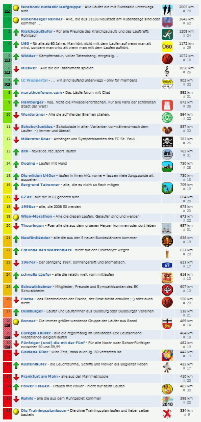 Die Position in der Tabelle ändern sich natürlich ständig - jeder Kilometer zählt :-)